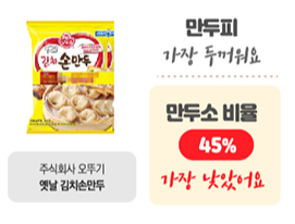 만두소 비율이 45%인, 주식회사 오뚜기 옛날 김치손만두